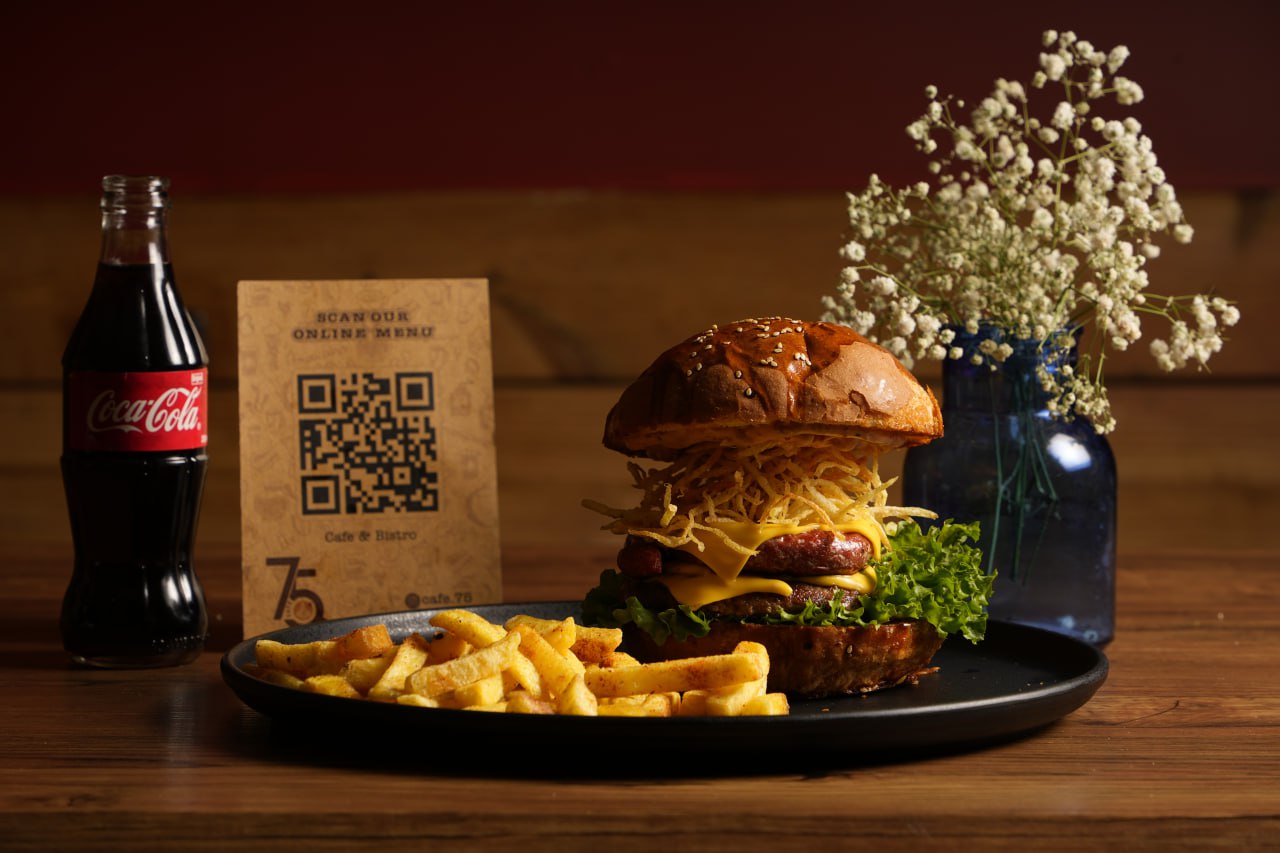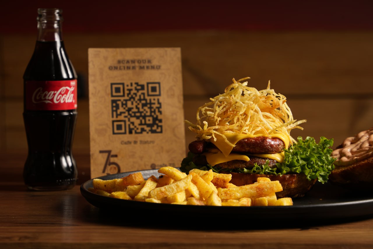 برگر 180 گرمی دستساز خودمون + یه عدد چوریتسو خوشمزه + سیب زمینی ژول سرخ شده + سس دستساز + سیب زمینی سرخ شده