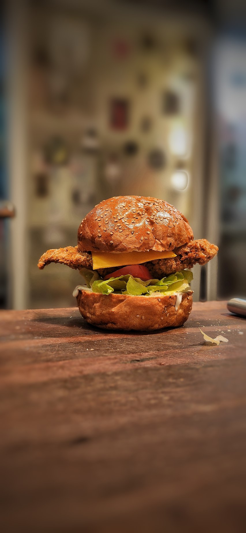 1 عدد سینه مرغ سوخاری شده+کاهو فرانسه +گوجه فرنگی+خیارشور +2عدد پنیر گودا+ سس مخصوص+ سیب زمینی سرخ شده