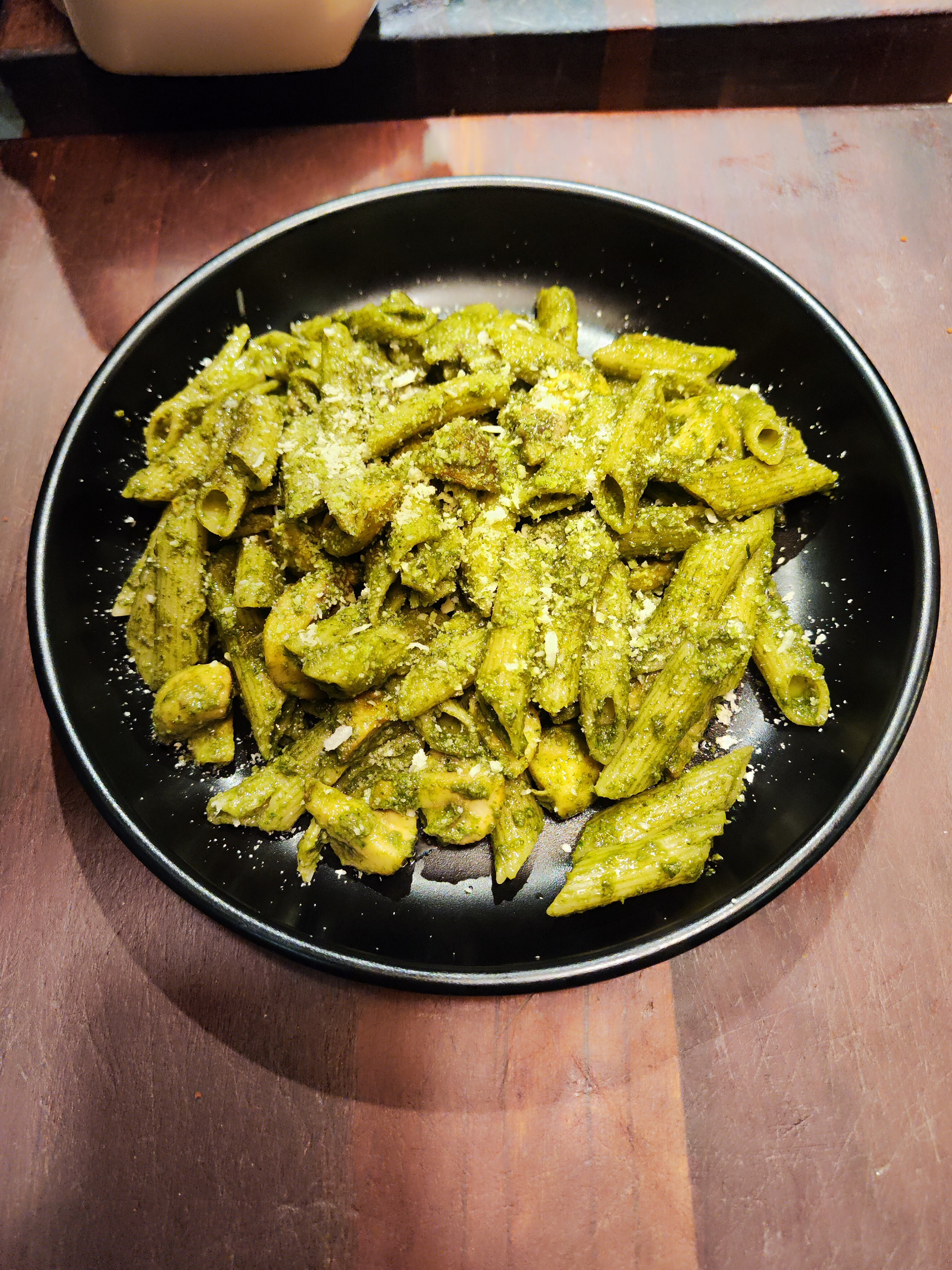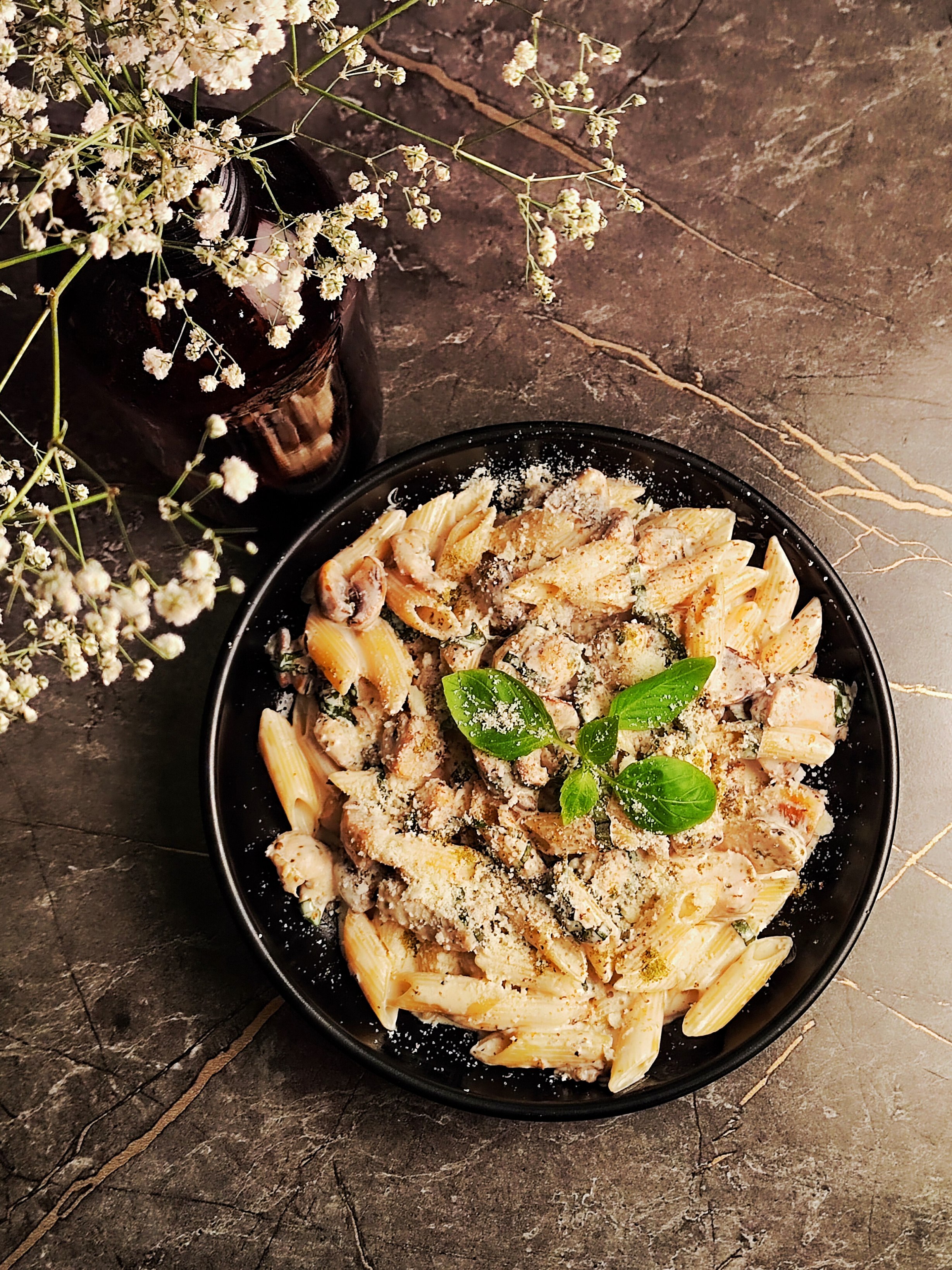 پنه ریگاته+ مرغ مزه دار شده+ قارچ+ سس آلفردو