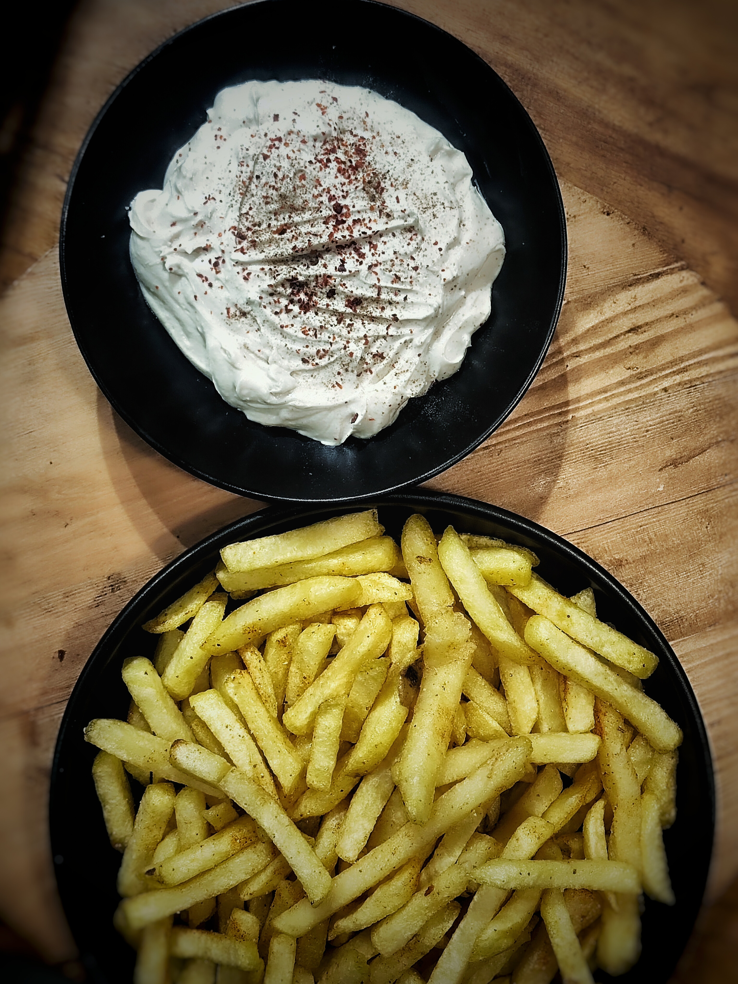 سیب زمینی سرخ شده به همراه سسی دست ساز از ماست و ارده که با ادویه مخصوصش طعم جدیدی به شما میشناسونه